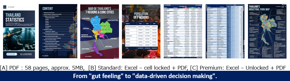 The Thailand Statistics Databook covers all 77 provinces, including population, GDP, and factory counts, along with key industrial estate information.